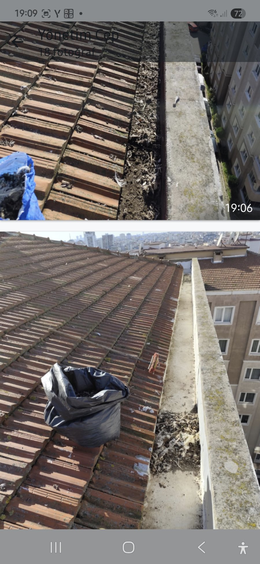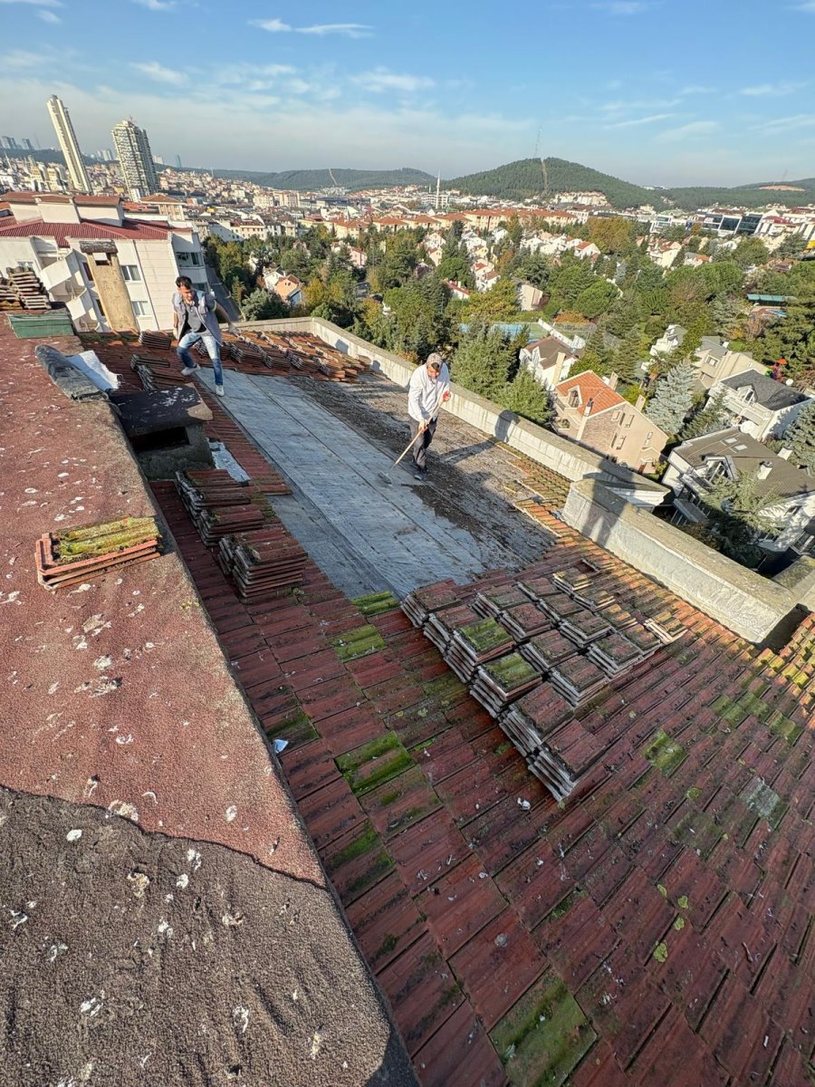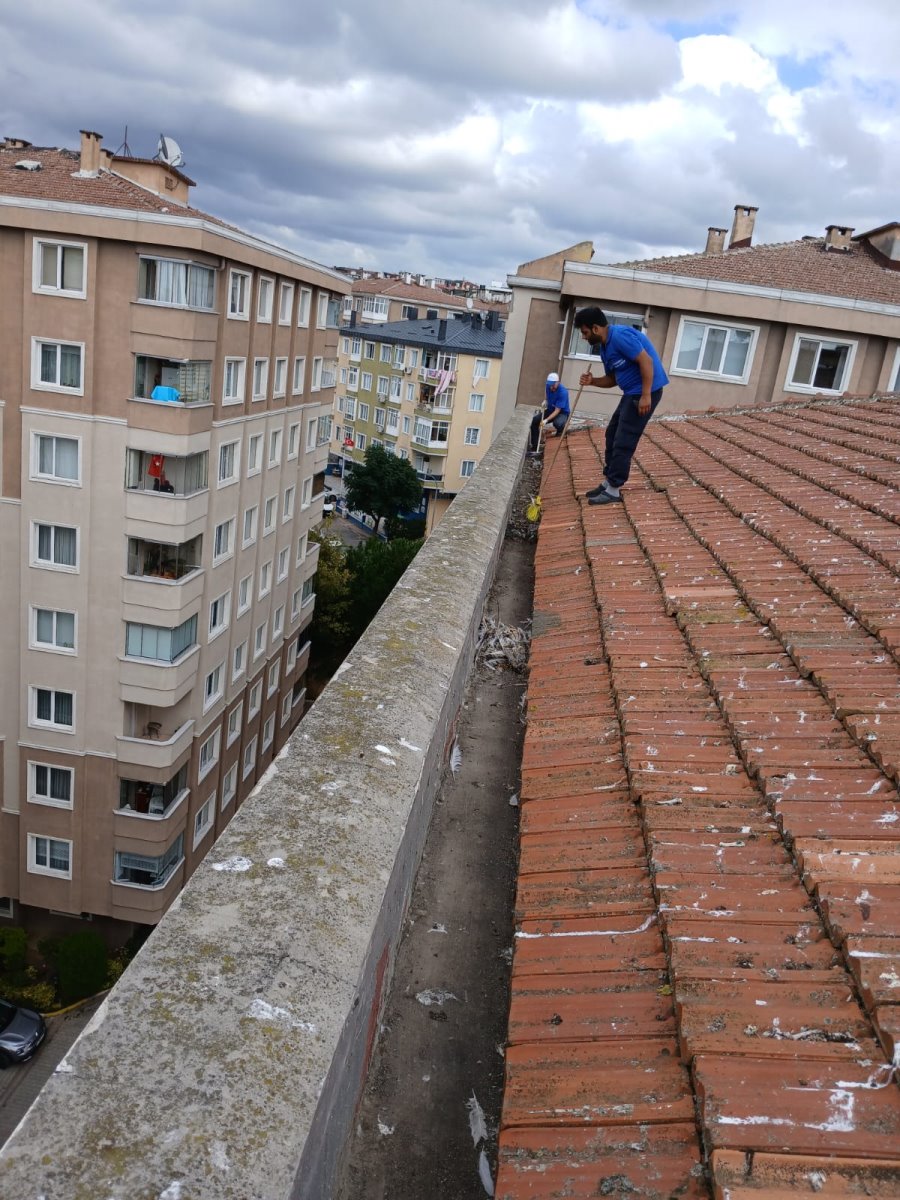 2- A5- BLOK-31 NOLU DAİRENİN ÇATISINDAN YAĞMUR SU SIZINTILARI TESBİT EDİLDİ. LOKAL OLARAK KİREMİT ALTI MEBRANI YENİLENDİ, SERİLDİ VE KIRIK KİREMİTLER DEĞİŞTİRİLDİ. 8-BLOK ÇATI KANALLARI MARTI ATIKLARINDAN TEMİZLENDİ KIRIK KİREMİTLER DEĞİŞTİRİLDİ.